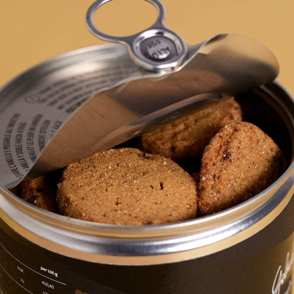 Crafted with artisanal care, these biscuits are hand-crafted to best preserve the organoleptic qualities of the ingredients. The clean and precise knife cut guarantees a rounded and uniform shape, enhancing the balance between crunchiness and friability.