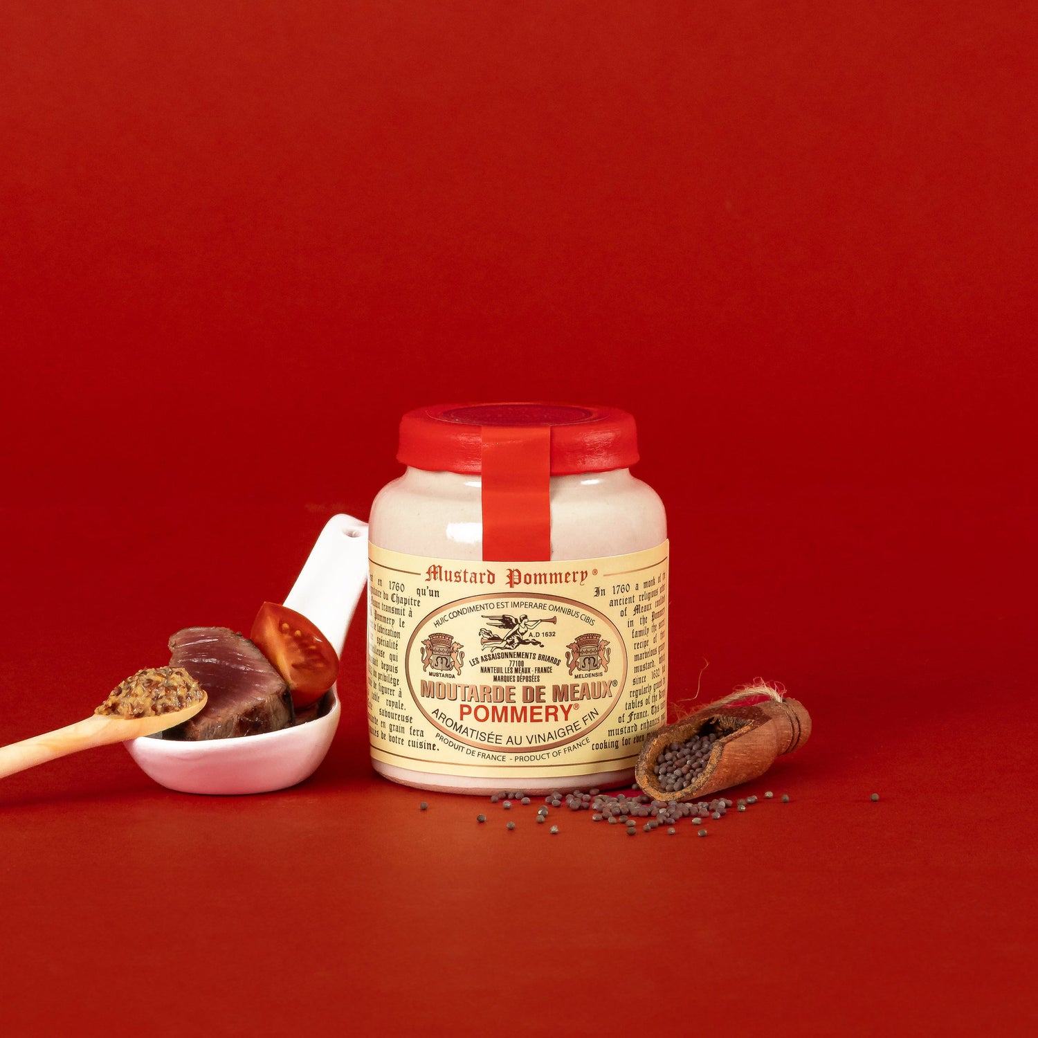 Pommery® Moutarde de Meaux®, a globally registered trademark since 1632, is a high-quality grain mustard that has survived the centuries while maintaining its excellence intact. Packaged in a distinctive 100g stoneware jar with a plastic cap, it was awarded the World's Best Mustard at the 2019 World-Wide Mustard Competition.