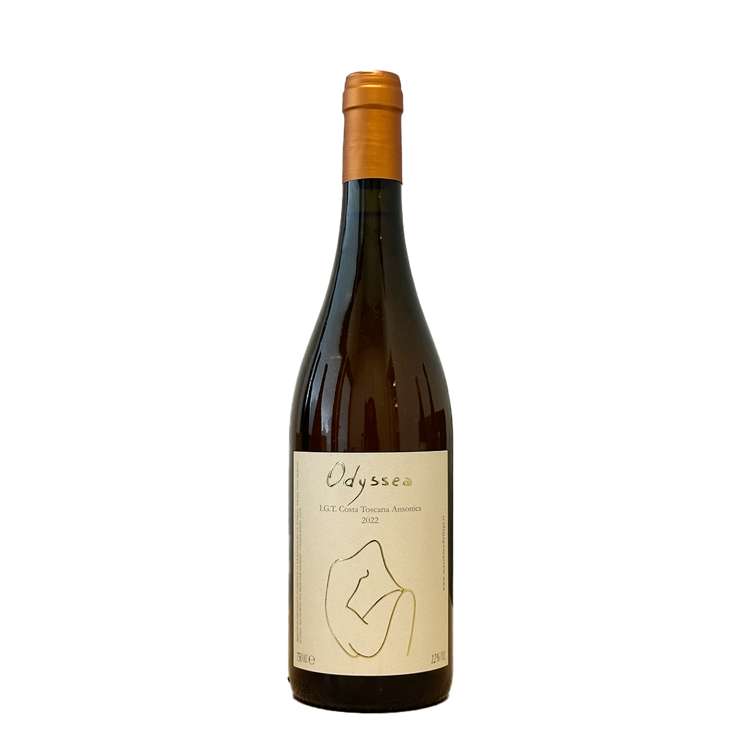 Macchion dei Lupi's 2022 Odyssea is made in Maremma, Tuscany, from Ansonica grapes grown organically and biodynamically. Maceration on the skins gives the wine its intense, distinctive orange wine character.